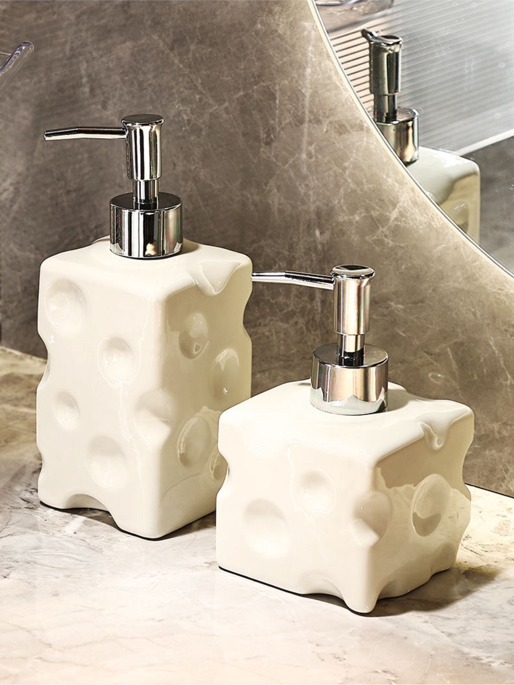【Winny Style】輕奢質感起司陶瓷北歐按壓瓶 600ml